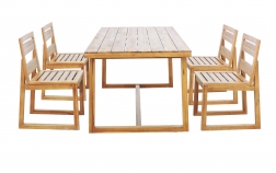 This set features modern angular trapezoid frames and comes with armchairs with beautiful wood-effect armrests.