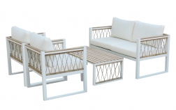Material: Wood ; Metal frame ; Wicker and Cushion