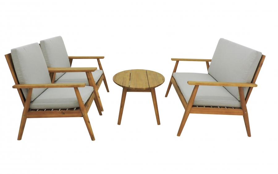 This Set includes a sofa 1 seater, a sofa bench two seater and one oval table.