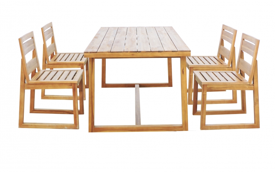 This set is a modern outdoor patio dining set that offers trendy styling, clean lines, and comfort. The rectangular table offers plenty of room for dining and entertaining, while the chairs are extremely comfortable. The set comes with 4 or upto 6 chairs, this will ensure plenty of room for all of your guests. With all wood, this table and chair set makes an eco-friendly option to host all of your outdoor gatherings